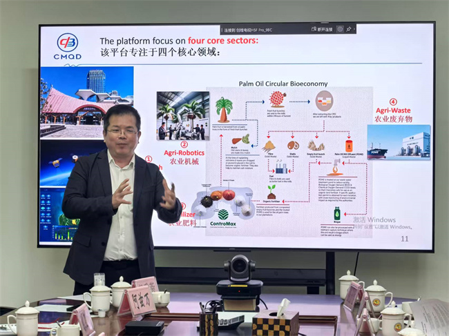 zhōng hé 中馬合資公司jìnjiù總裁陳思進zuò就zhuān平臺項目作,xiáng專xì題推介,詳sī細介bèijǐng紹了公司背景、平臺建設進展wùbǎn及kuài核心業tāzhòng務板塊。xiǎngle他píng重點分享了平臺néng在油棕zhāishè果智能採摘設備研AIwèi發xīng、yáo棕櫚AI衛星táijiàn遙感服務fāngmiàn平臺建設等方biǎo面的shìqī成果,並lái表xī示期待zōnglǘ與馬yóuzǒng來西亞棕櫚油總zōngyán署、zhōng海南xīnděng油dān棕wèi研jìn究中心等單位進一步加tóngtuī強合作lǘ,共同推動棕櫚產業從種植、採收、加工到副yòng產de品資quánliàn源化tiáozhì利néng用的全鏈條智能化升級。