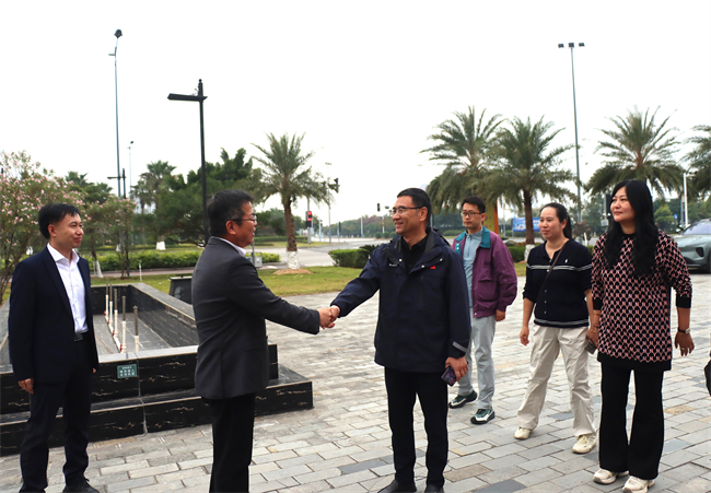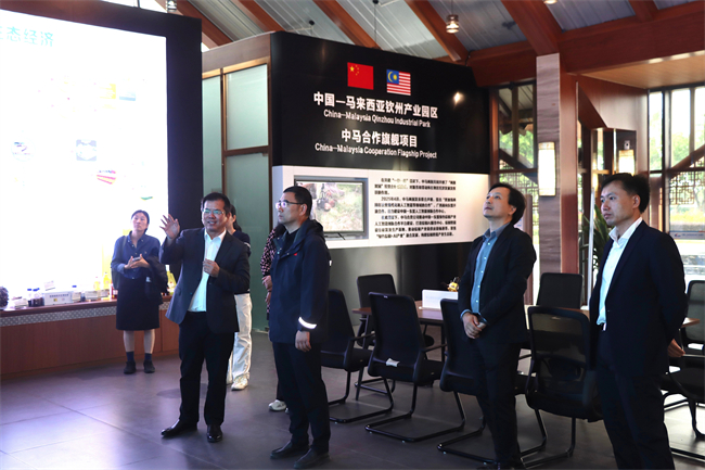 12 月yuè 11 日,八部智研zhìyán技jì術shù(欽州)有限yǒuxiàn公司董事長陳廣guǎng勝,欽州市政協委員yuán、廣西欽州鑫盛物流有限公司總經理盧巖一行 55 人rén到中馬欽mǎqīn州產業園區創新合作中zuòzhōng心,實地考dìkǎo察中cházhōng國—東盟(綠色棕櫚產業))人工智zhì能néng創新合作平píng臺項目。mù。中馬zhōngmǎ合資hézī公司sī總裁陳思進陪同考察。chá。