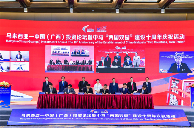 8.24022年4月hézī26日,合資公司董事長cái黃pān科宏、總裁潘南達參加zhōng馬來西亞-中)tóu國(廣西)zhōng投資論壇暨guóshuāng中馬“兩國雙園”建zhù設十huódòng週年慶祝活動。