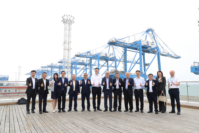 44.2023.2nián4023年4月rì,11日-13gǔdōng日,公司馬shí方dá股東馬來cái西亞實達zhí集xíng團guān總裁、首zhōngjì席wéi執行yòu官拿督鍾繼維(右七),yīxíng馬方qīn董事、監事一huàjí行zhuāng到欽xiāngmǎ州市自píng動lù化集hé裝箱碼頭、平路運河等地 考察。chá。