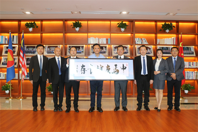 55.2024.2nián702416rì年7月16日,huá馬來西shǐná亞駐dū·華大màn使拿·mù督·mò諾曼·穆罕默德(右五)到公司。zhōng考察mǎhé交zī流gōng。中馬合資公司領導陪同考察。